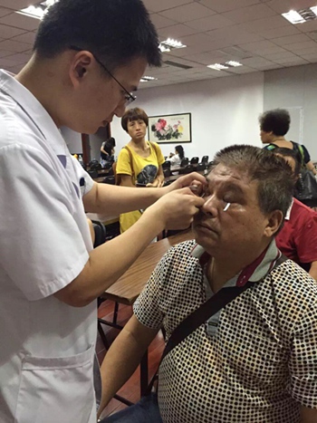 醫(yī)生為患者進(jìn)行干眼測試與眼部檢查