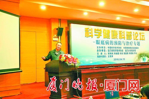 廈門大學附屬廈門眼【文章導讀】昨日舉行的“2016中國眼底病論壇——科學健康科普論壇”上,廈門大學附屬廈門眼科中心業(yè)務(wù)院長、眼底病學科帶頭人吳國基為市民帶來一場關(guān)于 飛蚊癥的演講