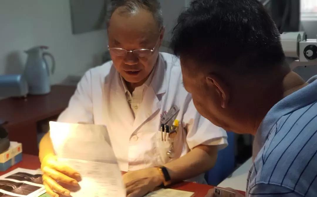 一年后,參加過(guò)那場(chǎng)講座的退休勞模老林,發(fā)現(xiàn)自己疑似視網(wǎng)膜脫離,便找吳國(guó)基診察治療。手術(shù)恢復(fù)期剛過(guò),這位勞模的視力恢復(fù)到了1.0,他特地找到了在診室坐診的吳國(guó)基,表達(dá)了自己的感謝,“生說(shuō)我恢復(fù)的很好,還說(shuō)我來(lái)得及時(shí),不然效果沒(méi)這么好,說(shuō)我比一些年輕人都懂得多。這當(dāng)然,我去年聽(tīng)過(guò)吳院長(zhǎng)的講座,他講了視網(wǎng)膜脫離,記得很清楚,出現(xiàn)的情況跟吳院長(zhǎng)講的一樣,我一想這不得了,必須去醫(yī)院找吳院長(zhǎng)做手術(shù)”。
