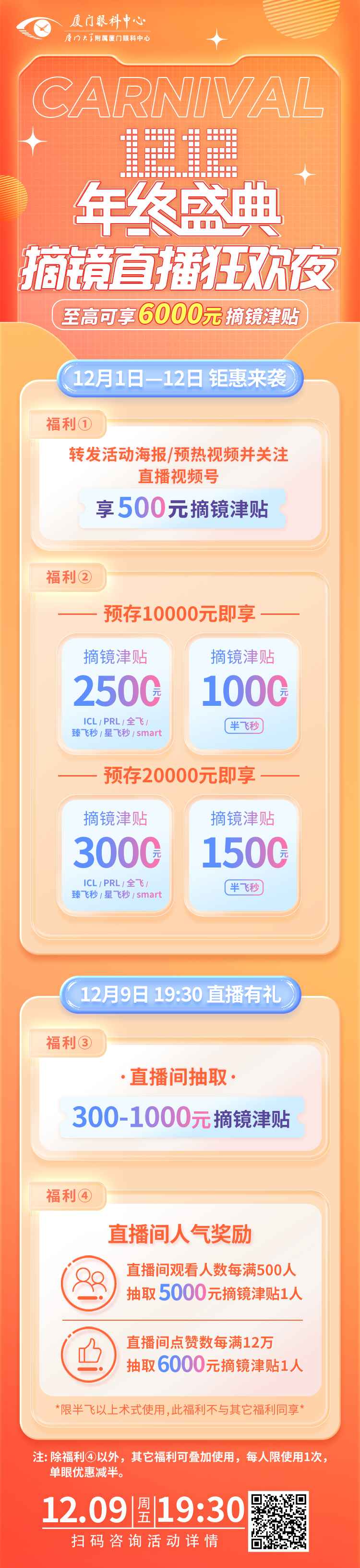 活動時間:12月1日至12月12日轉(zhuǎn)發(fā)活動海報/預(yù)熱視頻至PYQ保留3天以上,并關(guān)注直播視頻號,即享500元摘鏡津貼。
