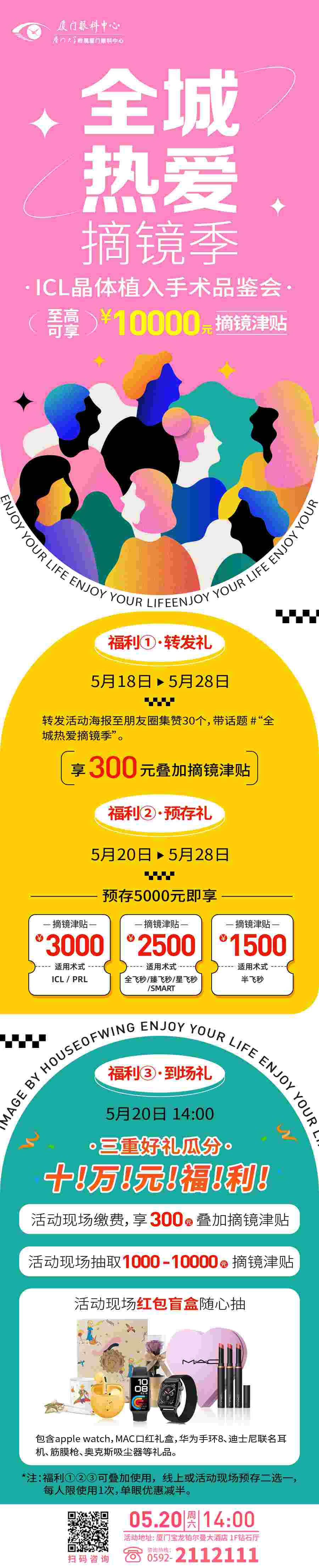 5月20日下午,到場(chǎng)參與活動(dòng),即享300元摘鏡津貼(需現(xiàn)場(chǎng)預(yù)存后疊加使用。