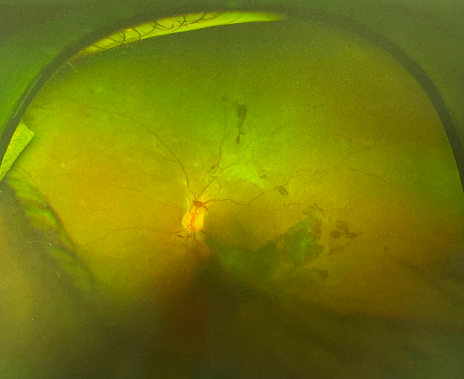 由于王女士的左眼沒有聽從醫(yī)生盡快做手術(shù)的建議,一直耽誤,從4月前的0.4視力逐漸下降到僅剩眼前手動,導(dǎo)致左眼發(fā)展到糖尿病視網(wǎng)膜病變VI期(屬于6期糖網(wǎng)中的晚期),已經(jīng)產(chǎn)生大量新生血管+纖維增值+廣泛牽拉性視網(wǎng)膜脫離,由于耽誤了病情,且病情發(fā)展異常迅速,導(dǎo)致目前左眼連保住眼球都很困難。