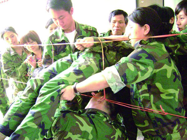 “相信大家,放心把你自己交給大家,你什么都不要想,大家會(huì)安全地把你接住”這是“信任背摔”項(xiàng)目的內(nèi)涵所在。項(xiàng)目形式是一個(gè)人站在4米高的位置,手被紅領(lǐng)巾綁住,然后在隊(duì)友“我們準(zhǔn)備好了,我們支持你,我們愛你”中從高空倒下,你的隊(duì)友們會(huì)用手臂把你安全接住,讓你感受團(tuán)隊(duì)?wèi)?zhàn)友的臂膀與赤誠(chéng)。