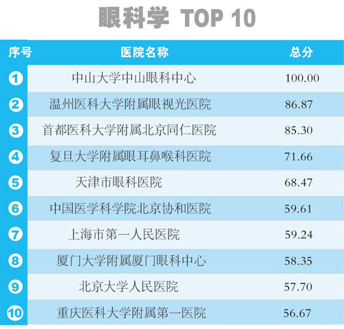 2014年度中國(guó)醫(yī)院科技影響力排行榜(眼科學(xué))