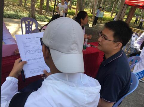 市民王先生,熱愛運(yùn)動(dòng),身體健康。之前看到過(guò)有關(guān)角膜捐獻(xiàn)的報(bào)道,也動(dòng)過(guò)捐獻(xiàn)角膜的心思。今天碰巧看到有宣傳活動(dòng),向廈門眼科中心眼庫(kù)的謝智文醫(yī)師咨詢了下捐獻(xiàn)角膜的流程后,就毫不猶豫的填寫了“廈門市遺體(器官)捐獻(xiàn)登記表”。