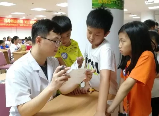 廈門(mén)眼科中心醫(yī)生免費(fèi)為現(xiàn)場(chǎng)的學(xué)生們進(jìn)行眼睛“體檢”