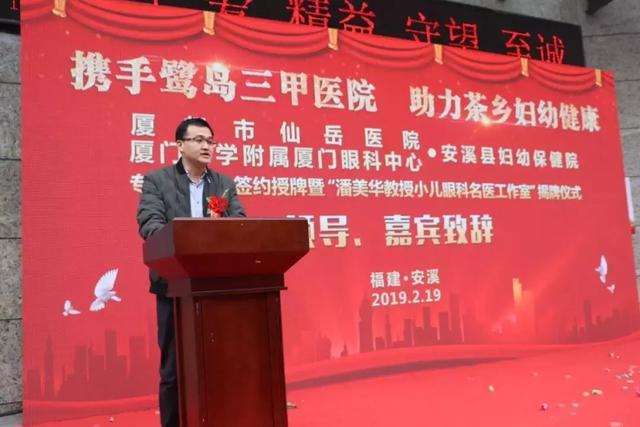 2月19日上午,廈門大學(xué)附屬?gòu)B門眼科中心與安溪縣婦幼保健院就小兒眼科共建醫(yī)療聯(lián)合體,并舉行了“潘美華教授小兒眼科名醫(yī)工作室”揭牌儀式。