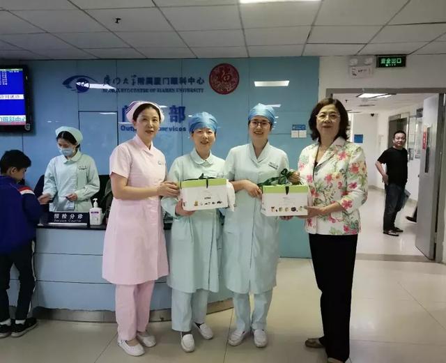 5月12日上午,廈門大學(xué)附屬?gòu)B門眼科中心工會(huì)主席陳逸恬、護(hù)理部主任許春麗及華廈眼科集團(tuán)護(hù)理管理中心洪清配業(yè)務(wù)副院長(zhǎng)一行專程前往各科室,慰問正在臨床一線辛勤工作著的護(hù)士,為大家送上節(jié)日蛋糕,送上節(jié)日的問候和祝福。