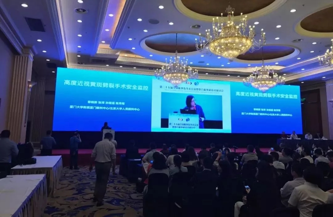 黎曉新院長(zhǎng)受邀作為大會(huì)的VIP專(zhuān)家,在視網(wǎng)膜外科專(zhuān)場(chǎng),進(jìn)行了《高度近視黃斑劈裂手術(shù)安全》的演講,將北京大學(xué)人民醫(yī)院、廈門(mén)大學(xué)附屬?gòu)B門(mén)眼科中心的患者數(shù)據(jù)進(jìn)行對(duì)比,證實(shí)高度近視黃斑劈裂相關(guān)治療爭(zhēng)論焦點(diǎn)。