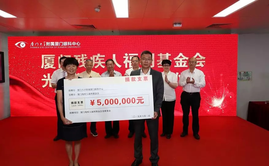 五緣院區(qū)開業(yè)儀式上,廈門眼科中心再次將“光明的信仰”傳遞——為廈門市殘聯(lián)捐款500萬元,成立專項基金,用于視力殘疾預(yù)防、眼科手術(shù)救助、盲人協(xié)會活動等。