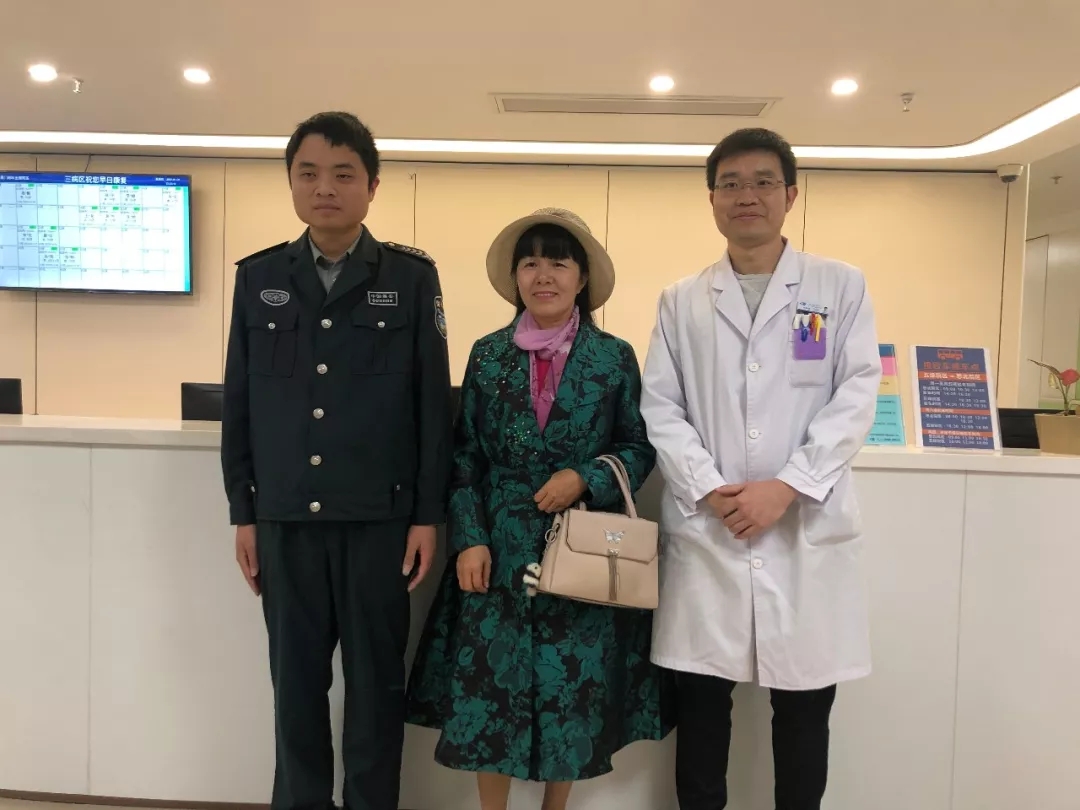 9日下午,故事里的主人公張瓊花女士特地從泉州趕回廈門,向廈門大學(xué)附屬?gòu)B門眼科中心保安部巡邏崗保安萬志豪、眼外傷專科李海波博士表示感謝。