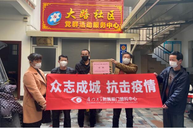 ▲廈門(mén)眼科中心為漳州市云霄縣大路社區(qū)捐贈(zèng)抗疫物資