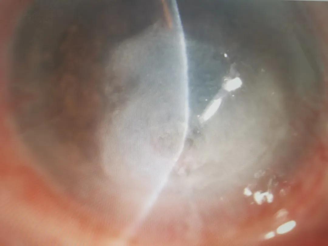 廈門大學附屬廈門眼科中心眼表及角膜病學科帶頭人吳護平教授接診了老楊。經(jīng)過吳教授詳細檢查與診斷,確診老楊右眼“角膜潰瘍”,建議老楊住院治療??煽紤]到時值春節(jié),老楊還是堅持先保守治療,等春節(jié)過后再入院手術。