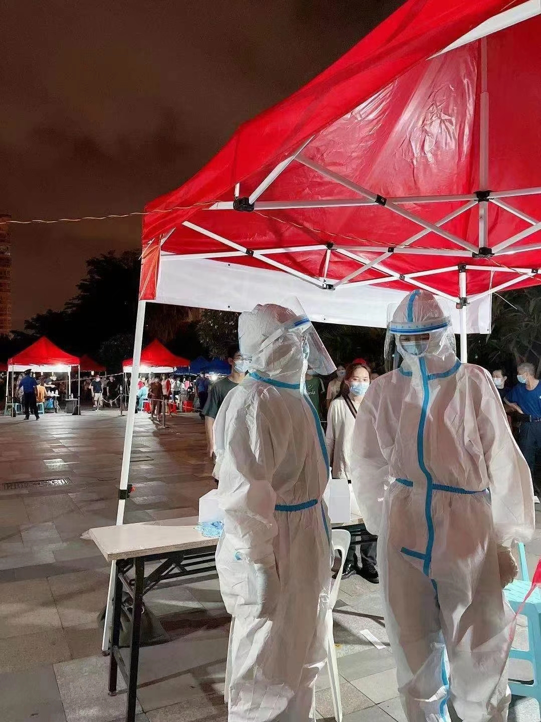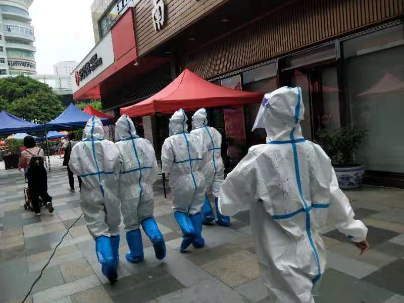 多名醫(yī)護(hù)人員緊急趕赴一線,參與核酸檢測(cè)工作