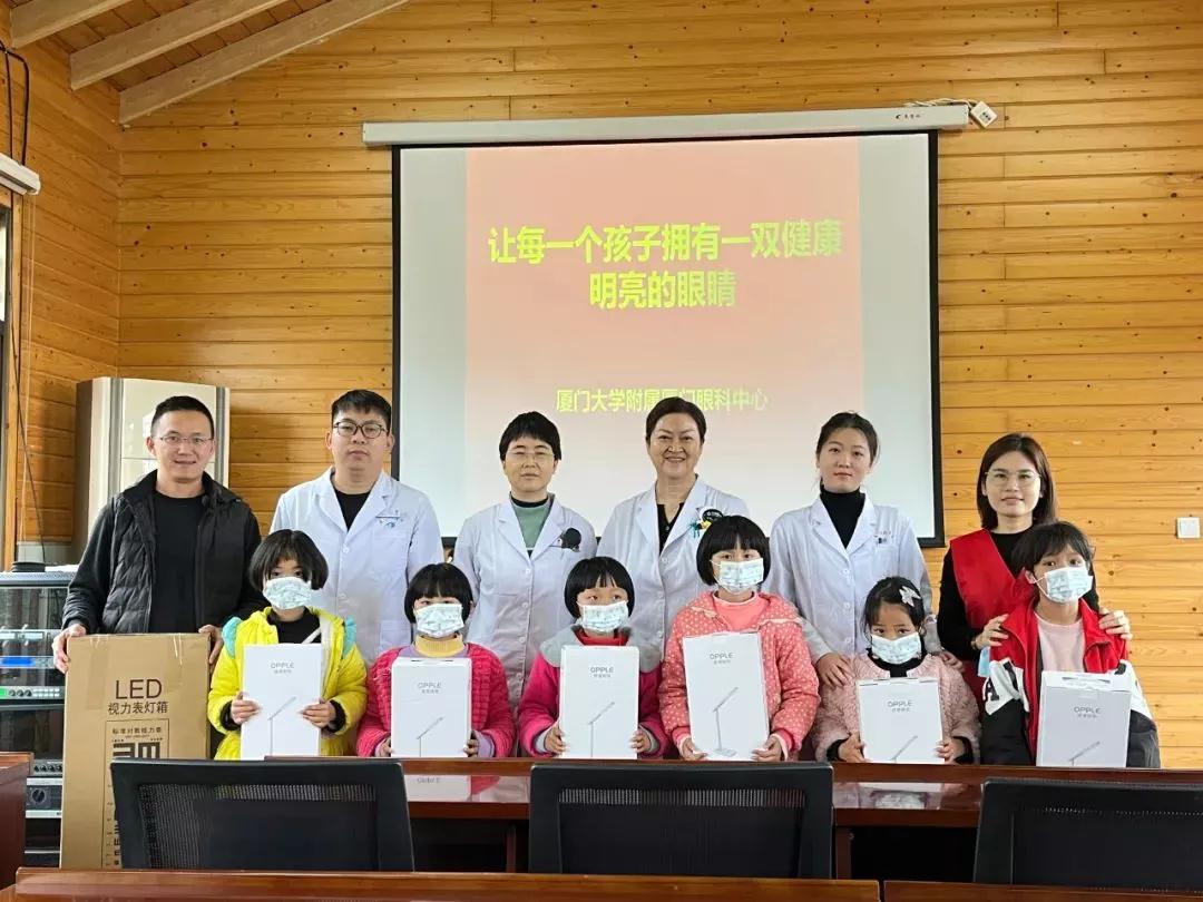 1月5日,潘美華院長親自領(lǐng)銜帶隊,深入同安區(qū)蓮花中心小學(xué)上陵小學(xué)教學(xué)點和白交祠小學(xué)教學(xué)點,為鄉(xiāng)村孩子進行視力篩查、科普宣教、贈送護眼大禮包等公益活動,多方位、科學(xué)、精準(zhǔn)、長效地做好廈門市兒童青少年近視綜合防控,協(xié)助學(xué)校建立近視防控體系。