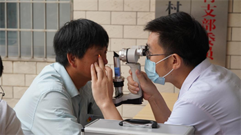 黨員光明先鋒為村民進(jìn)行眼健康檢查