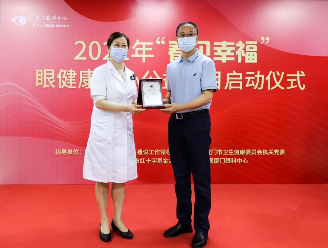 市委文明辦副主任、市愛心辦執(zhí)行副主任虞圣堅,市衛(wèi)健委領導、計生協專職副會長陳文生,市紅十字會黨組成員、副會長兼基金會理事長蔡志凱,市紅十字會賑濟部部長楊碧英,廈門大學附屬廈門眼科中心總院長黎曉新,中共廈門大學附屬廈門眼科中心總支書記劉旭陽,廈門大學附屬廈門眼科中心業(yè)務副院長潘美華等領導出席啟動儀式。