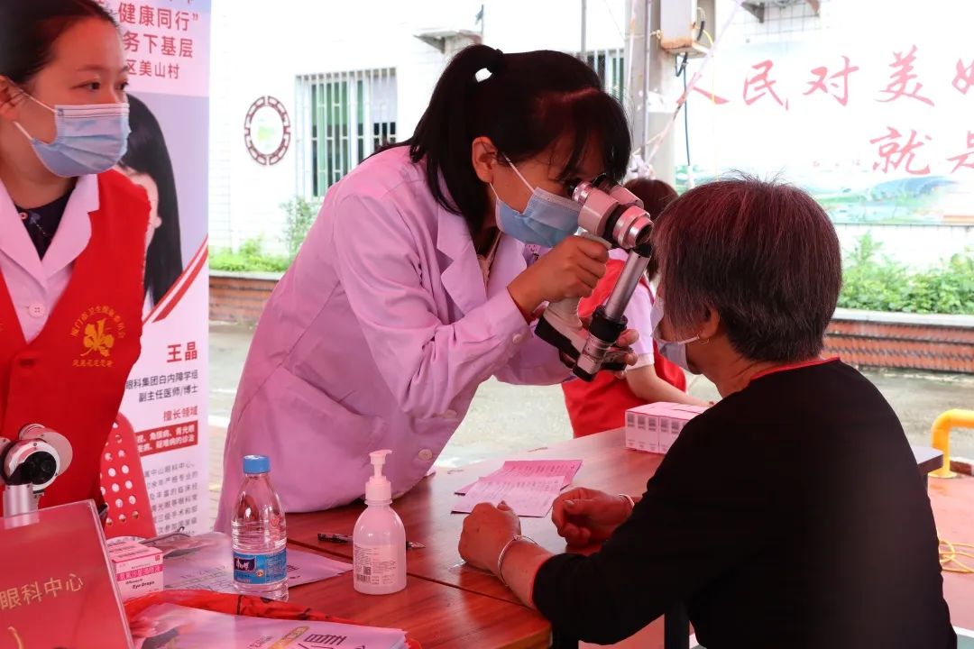 建黨節(jié)期間,項目聯(lián)合廈門大學(xué)附屬廈門眼科中心黨總支、鳳凰花光明先鋒志愿服務(wù)隊組織黨員志愿者代表,來到同安區(qū)蓮花鎮(zhèn)蓮花村新時代文明實踐站、翔安區(qū)金海街道浦西社區(qū)新時代文明實踐站,為當(dāng)?shù)鼐用袢罕娝腿チ伺牡难劢】岛Y查及義診活動。