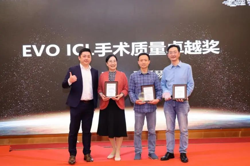 ▲ STAAR Surgica公司區(qū)域銷售經(jīng)理余洋先生為鄭林、陳亮頒發(fā)“EVO ICL手術(shù)質(zhì)量卓越獎(jiǎng)”。
