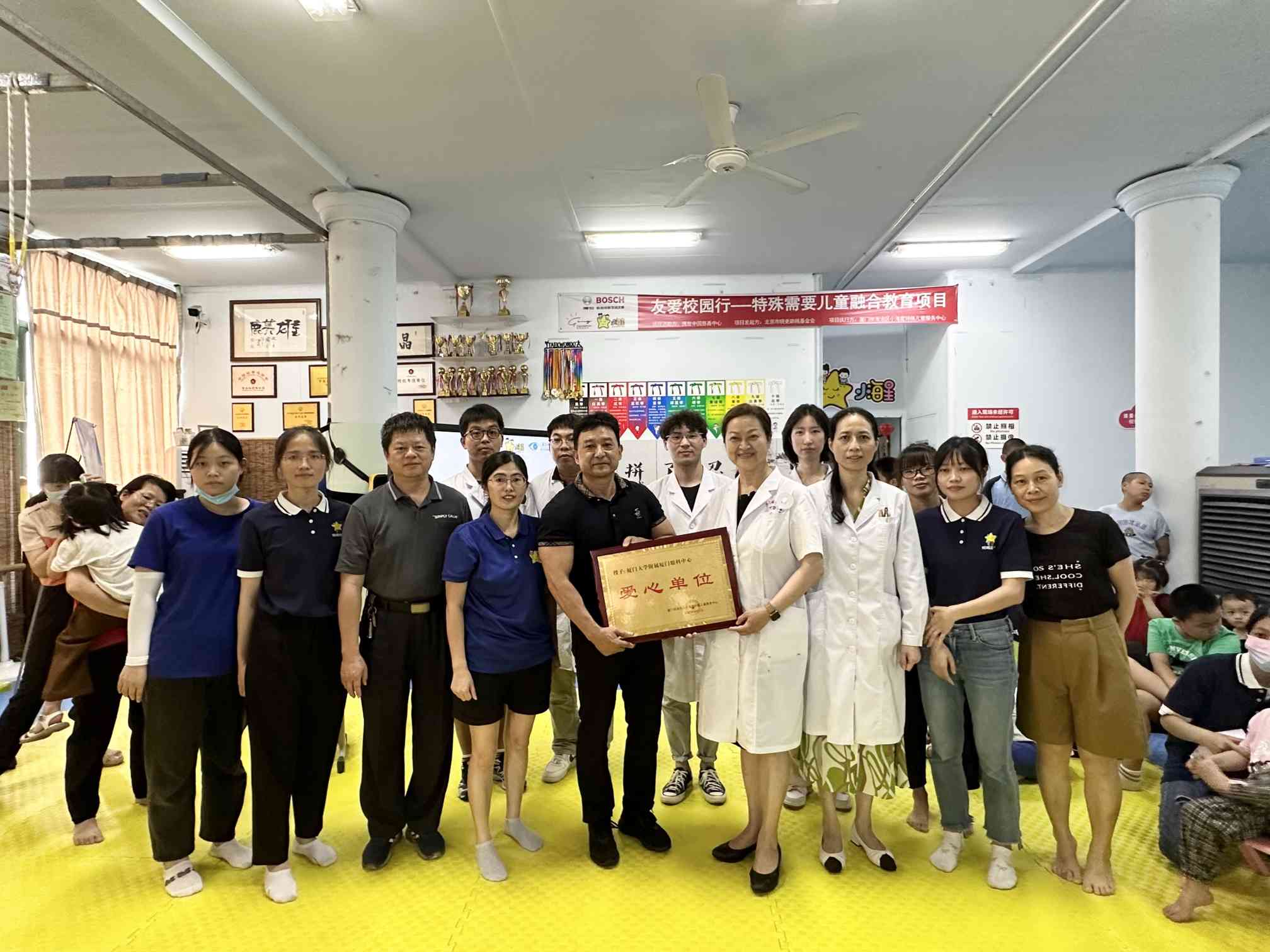 活動過程中,海滄區(qū)殘疾人聯(lián)合會周偉儒理事長、廈門市海滄區(qū)小海星特殊兒童服務(wù)中心理事長梁潔等人代表授予醫(yī)院“愛心單位”的稱號,并對醫(yī)院的善舉給予了真誠的感謝。