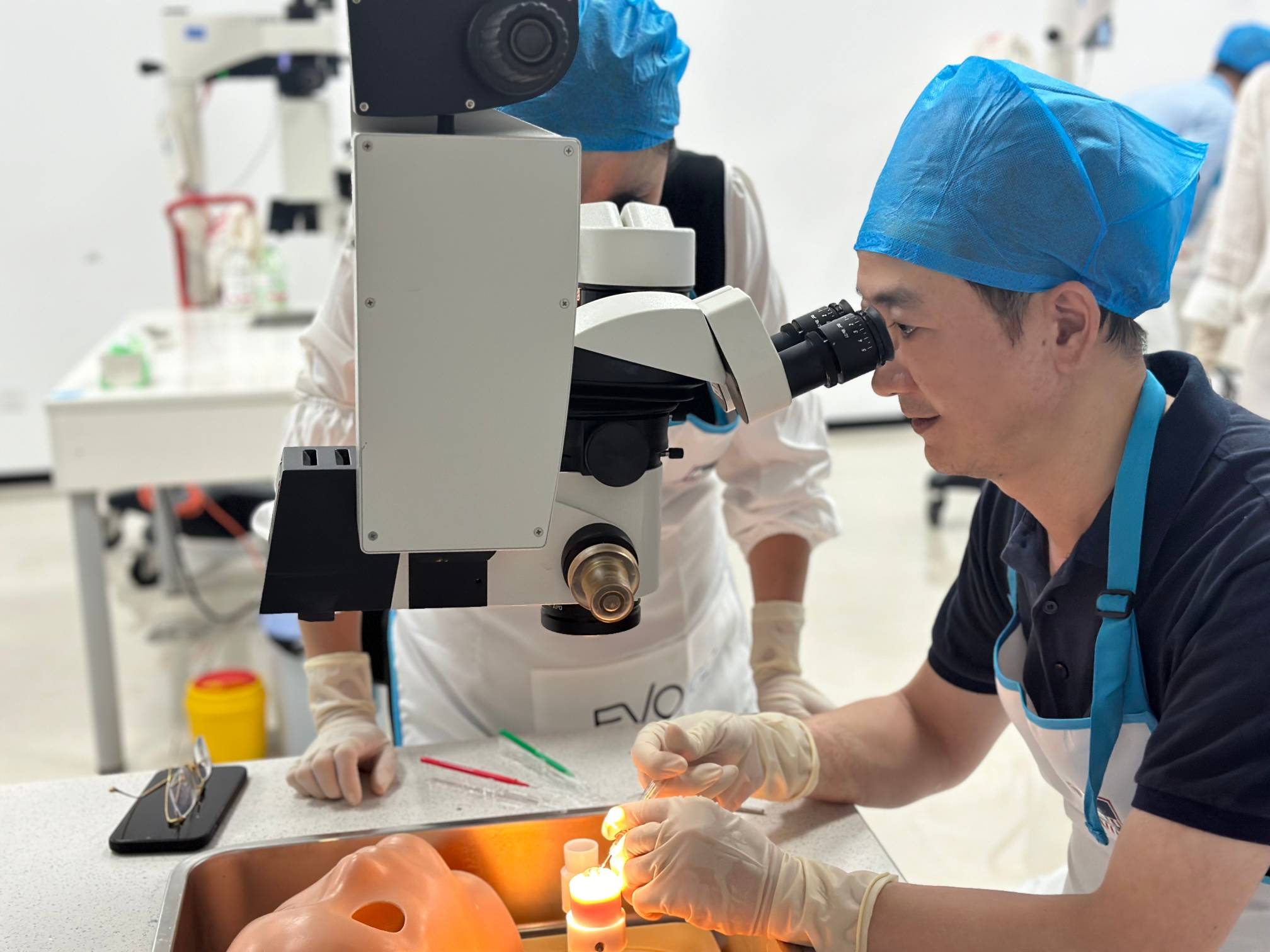 臨床操作實(shí)驗(yàn)室內(nèi),參培醫(yī)師們進(jìn)行了Wetlab動物眼實(shí)操練習(xí) 。