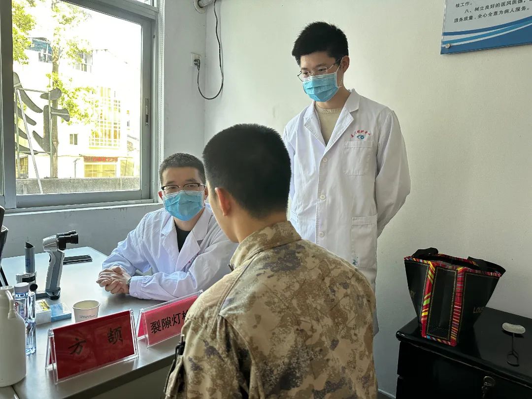 現(xiàn)場(chǎng),眼表與角膜病中心的專(zhuān)家團(tuán)隊(duì)為官兵們提供視力、裂隙燈及相關(guān)眼表檢查,前來(lái)問(wèn)診的小林自述,自己常常覺(jué)得眼睛很癢,“感覺(jué)眼睛里面有東西,總想用手去揉眼睛。”詳細(xì)問(wèn)診并結(jié)合現(xiàn)場(chǎng)檢查后,眼表與角膜病中心的方頡醫(yī)生發(fā)現(xiàn)小林是由于過(guò)敏史導(dǎo)致的結(jié)膜炎,當(dāng)即告知其適合治療的藥物,以及平常如何避免發(fā)病的防范小技巧。
