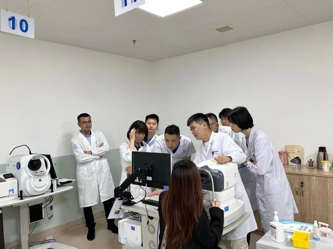 聽完精彩的授課,參培醫(yī)師在史小玲主任的帶領(lǐng)下來到廈門眼科中心門診進行 門診觀摩 ,實地了解和學習ICL術(shù)前檢查和術(shù)后觀察處理流程,通過技能操作進一步了解ICL晶體植入手術(shù)的各項要點。