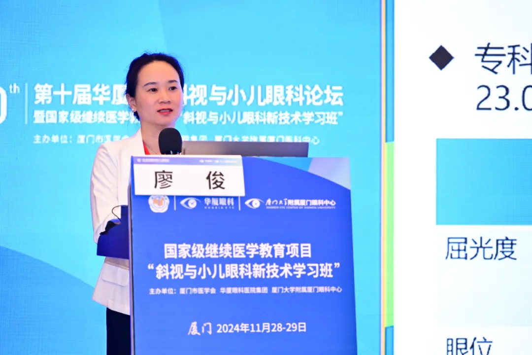 隨后,福建省醫(yī)學(xué)會眼科學(xué)分會主任委員朱益華教授,中華醫(yī)學(xué)會眼科學(xué)分會斜視與小兒眼科學(xué)組副組長王利華教授,中山大學(xué)中山眼科中心顏建華教授,山西省眼科醫(yī)院馮雪亮教授,華廈眼科醫(yī)院集團視光學(xué)科總監(jiān)、深圳華廈眼科醫(yī)院劉春民教授,廈門眼科中心業(yè)務(wù)副院長、斜視與小兒眼科學(xué)科帶頭人潘美華教授,合肥名人眼科醫(yī)院陳林義教授,武漢華廈眼科醫(yī)院戴鴻斌教授,成都愛迪眼科醫(yī)院廖俊教授,大連華廈眼科醫(yī)院盧燕教授等專家分別圍繞疑難復(fù)雜斜視、弱視、近視防控、高度近視及青光眼等議題進行了學(xué)術(shù)分享,介紹了相關(guān)兒童眼病臨床診療的新發(fā)現(xiàn)、新進展及新技術(shù)。