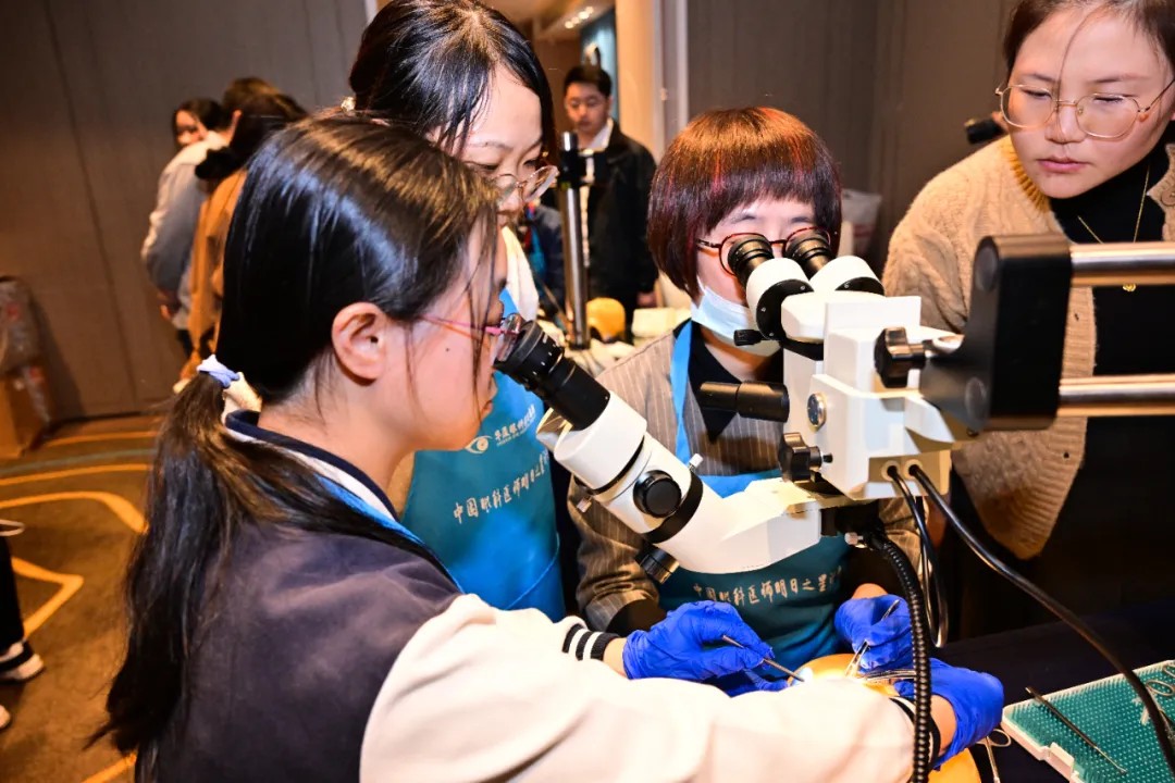 除學(xué)術(shù)環(huán)節(jié)外,本次論壇特別開設(shè)了斜視手術(shù)Wetlab實操培訓(xùn)專場及手術(shù)錄像展播。廈門眼科中心斜視與小兒眼科的主任醫(yī)師謝仁藝,副主任醫(yī)師楊梅、何歡、王海燕為學(xué)員們一對一講解了斜視手術(shù)的操作要點、技巧,手把手指導(dǎo)學(xué)員在動物眼上實操,大大提升了學(xué)員們的斜視手術(shù)技能。
