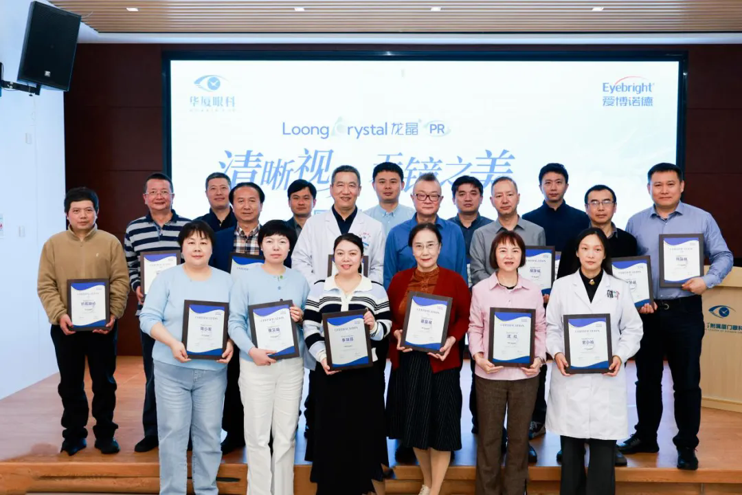 實(shí)操環(huán)節(jié)結(jié)束后,劉才遠(yuǎn)教授為參會醫(yī)生頒發(fā)了證書和獎杯,表彰他們在學(xué)術(shù)交流中的優(yōu)秀表現(xiàn),攜華廈眼科一眾眼科專家教授共同見證了集團(tuán)步入ICL晶體、龍晶PR、PRL等多元化發(fā)展階段的歷史新時(shí)刻。