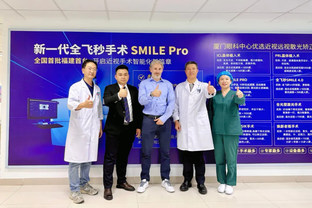 5月12日,德國蔡司屈光技術專家Christian Gruenwald到訪廈門眼科中心。此次訪問主要聚焦新一代機器人全飛秒VISUMAX 800設備的落地應用,雙方就技術細節(jié)、臨床實操與參數(shù)解析展開深入交流,為眼科前沿技術的創(chuàng)新發(fā)展注入新動能,標志著屈光手術正式邁入“智能機器人輔助”的新紀元。