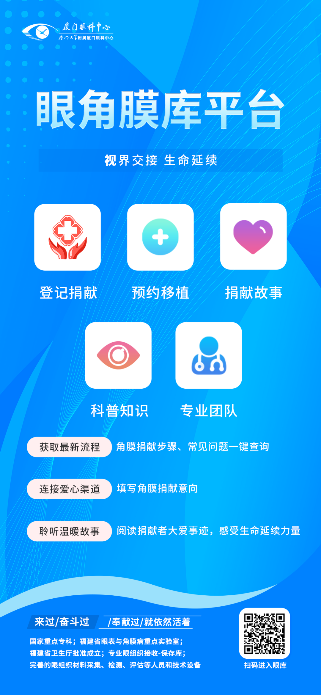 廈門眼科中心眼庫平臺,能快速獲取角膜移植與角膜捐獻相關(guān)內(nèi)容。在這里,您可以: