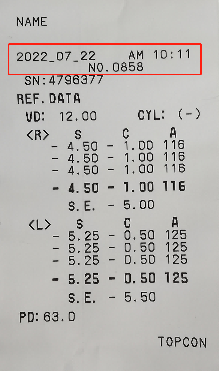 在驗(yàn)光單開頭,有檢查的日期時(shí)間、編號(hào)信息