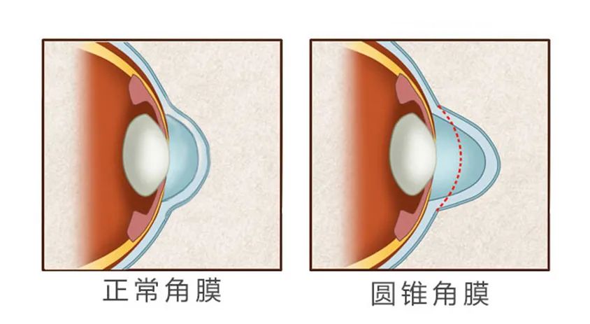 圓錐角膜其實是一種非炎癥性、慢性、進展性的角膜異常病變,角膜中央組織逐漸變薄,導致角膜由外圍向內(nèi)收縮、下塌,而形成向外凸出的圓錐形狀。形象點說,圓錐角膜就是角膜向前突出,看上去就像一個圓錐體。